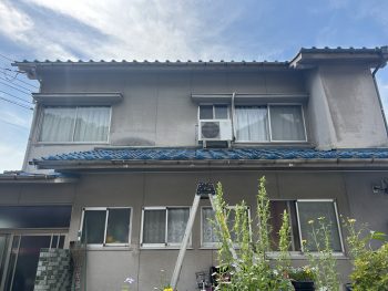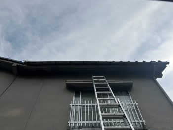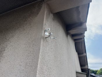 次に、正面の2階と1階の雨樋が下がってる部分に3箇所ずつ金具を補強しました。