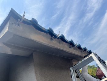 最後に、隣からハシゴをかけ、中央付近の下がっている部分に、2箇所金具を補強しました。