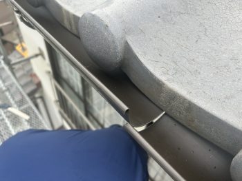 次に、勾配の確認をしながら、の軒樋の金具を取り付けていきました