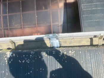 こちらの箇所においても割れている箇所だけではなく、隠蔽部分の奥の方まで材料練り込んでいますので、次回屋根の工事するまでの延命作業となります。x