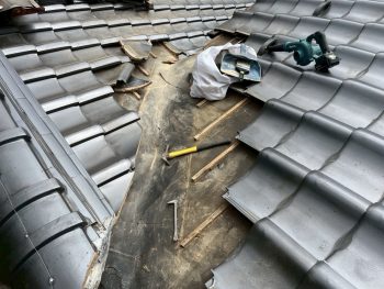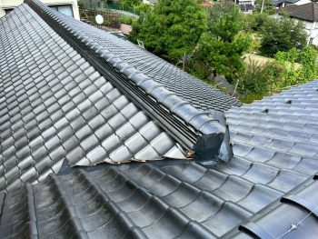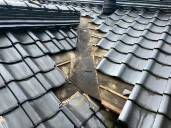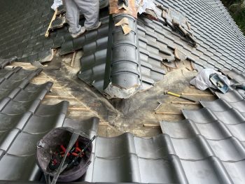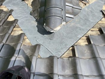 既存の谷板金撤去後、新しい防水シートを敷いてあります。