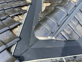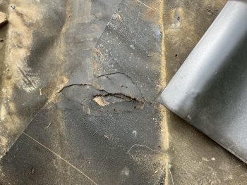 既存の谷板金は錆びて穴が空いていた為、下の防水シートも穴が空いていました。