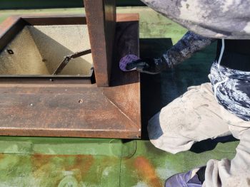最初にハッチにケレン掛けをおこない、錆や表面の汚れを落としていきました。