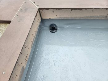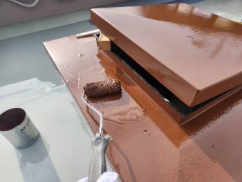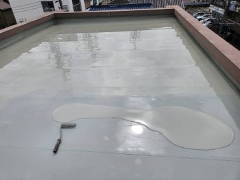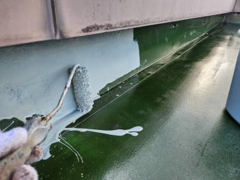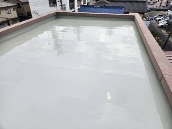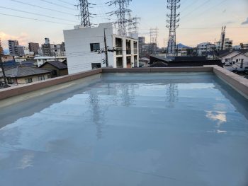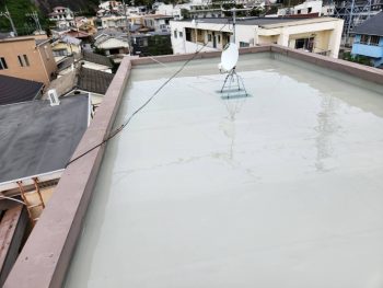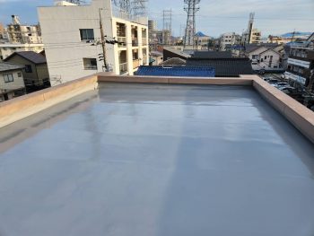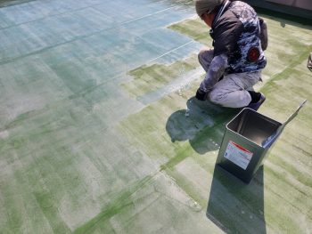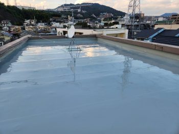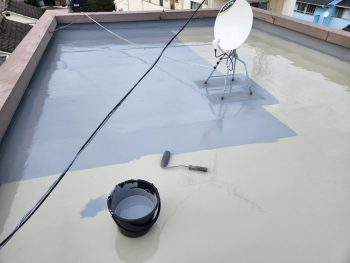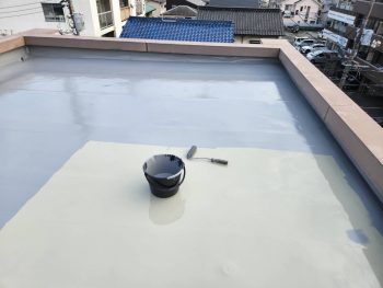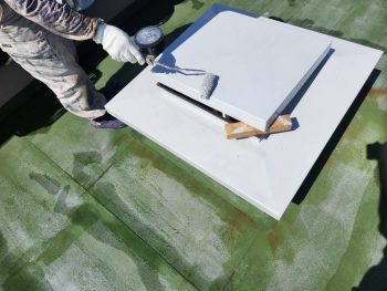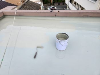 ウレタン樹脂2回塗布後、防水層を保護する為にトップコート(保護塗料)を屋上全体に塗布しています。