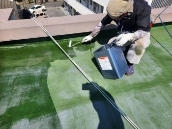 その後、ウレタン樹脂を屋上全体に塗布していきました。